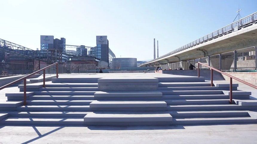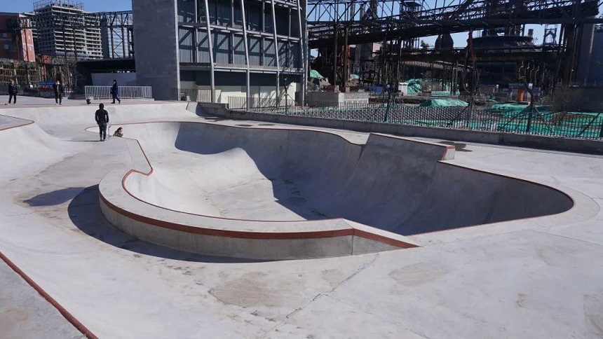 首鋼滑板公園位于北京石景山區(qū),距離地鐵一號線西端的蘋果園站大概3站地的距離,項目總占地面積17913平米,其中滑板區(qū)、攀巖區(qū)各占地約4000平方米,這個新建的滑板場屬于國內(nèi)大型場地。